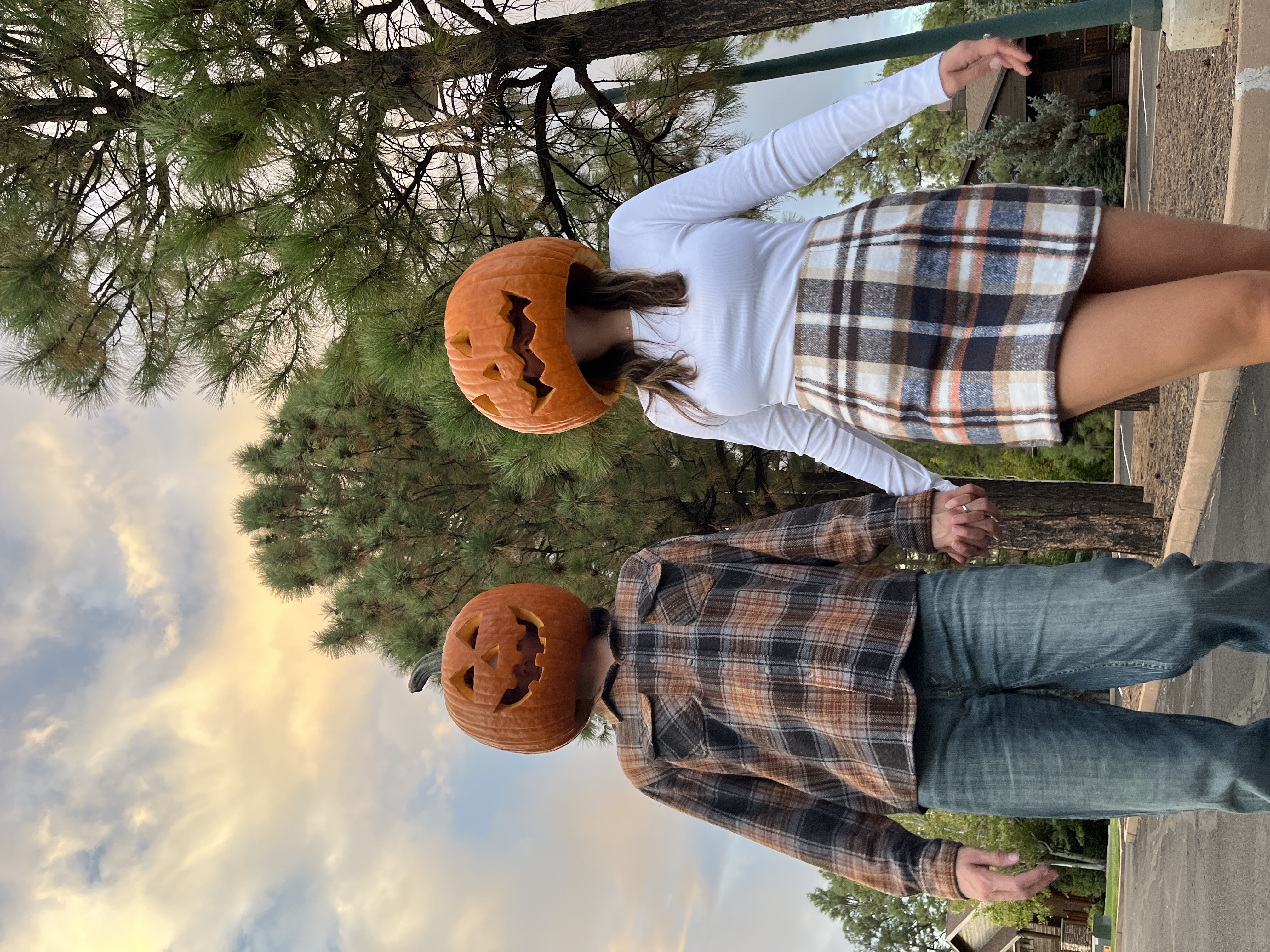 So, we drove to Costco, found the best pumpkins that we could find and hoped that they would fit over our heads! We carved the faces and embraced the halloween couple judgement of walking around with jack-o-lanterns on our heads. And it was some of the most fun we have had in a long time.